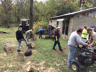 The work went quickly and efficiently thanks lots of hands, lots of chain saws and the use of two hydraulic splitters. (A special thanks to Chuck Breech and Mark Sizemore for bringing these along!)